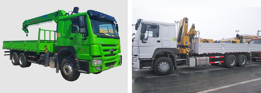 ● اختر من حالة صالحة للعمل. بالنسبة لذراع الرافعة، لدينا النوع المطوي والنوع التلسكوبي. الشاحنة البيضاء بالأسفل مزودة بذراع مطوي. شاحنة الرافعة الخضراء مزودة بذراع تلسكوبي.