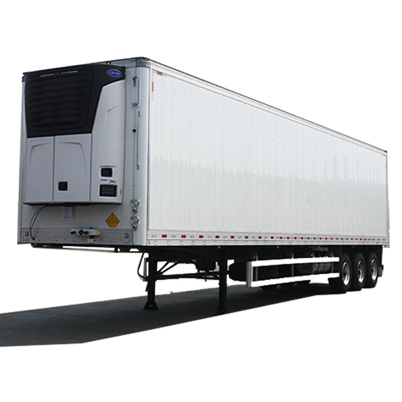 مقطورة ثلاجة 3 محاور 40 قدم مع مبرد Thermo King هي عبارة عن مقطورة صندوقية مغلقة تستخدم للحفاظ على درجة حرارة البضائع المجمدة أو المحفوظة، ذات سعة كبيرة مثل 40 طن، والتي تستخدم غالبًا لنقل الأطعمة المجمدة (شاحنات التجميد)، ومنتجات الألبان (شاحنات الألبان)، والخضروات والفواكه (شاحنات البضائع الطازجة) ، إلخ. وهي تتألف من جزء المشي من هيكل السيارة الخاص، وجسم العزل الحراري (يتكون بشكل عام من مادة البولي يوريثين، FRP، لوحة الصلب الملونة، الفولاذ المقاوم للصدأ، وما إلى ذلك)، ووحدة التبريد، ومسجل درجة الحرارة في المقصورة وغيرها من المكونات.